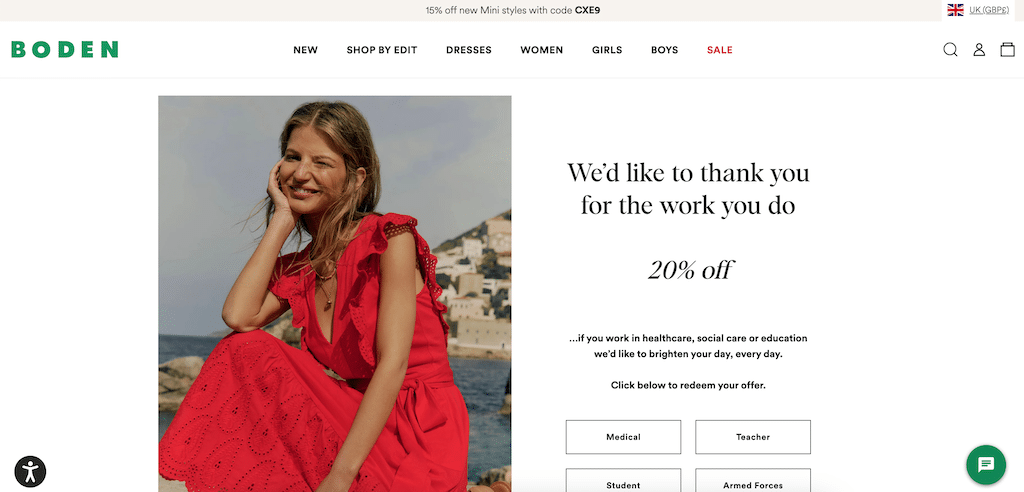 🎓 Are there special BODEN coupon codes for students or teachers?
